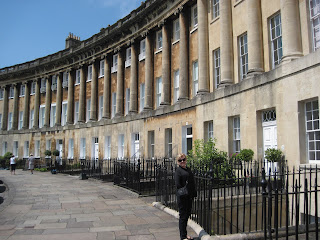 In my book Love in the Library (Brides of Bath#5) my heroine lives at Number 17 Royal Crescent in Bath. Here's a picture of me in front of one of the magnificent townhouses on Bath's Royal Cresent in June of 2013.
